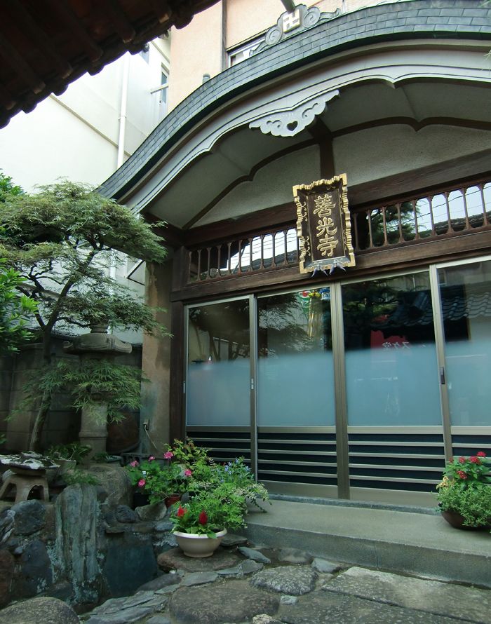 商店街の中にある小さなお寺です。名前の通り信州善光寺の流れを受けたお寺で仏様も全て同じ善光寺仏を安置しております。信州では七年に一度しか御開帳されませんがこちらではそのお姿を拝見しながらお参りしていただいております。にぎやかな商店街から一歩足を踏み入れると心を落ち着かせる場となることでしょう。どうぞお気軽にお参り下さい。